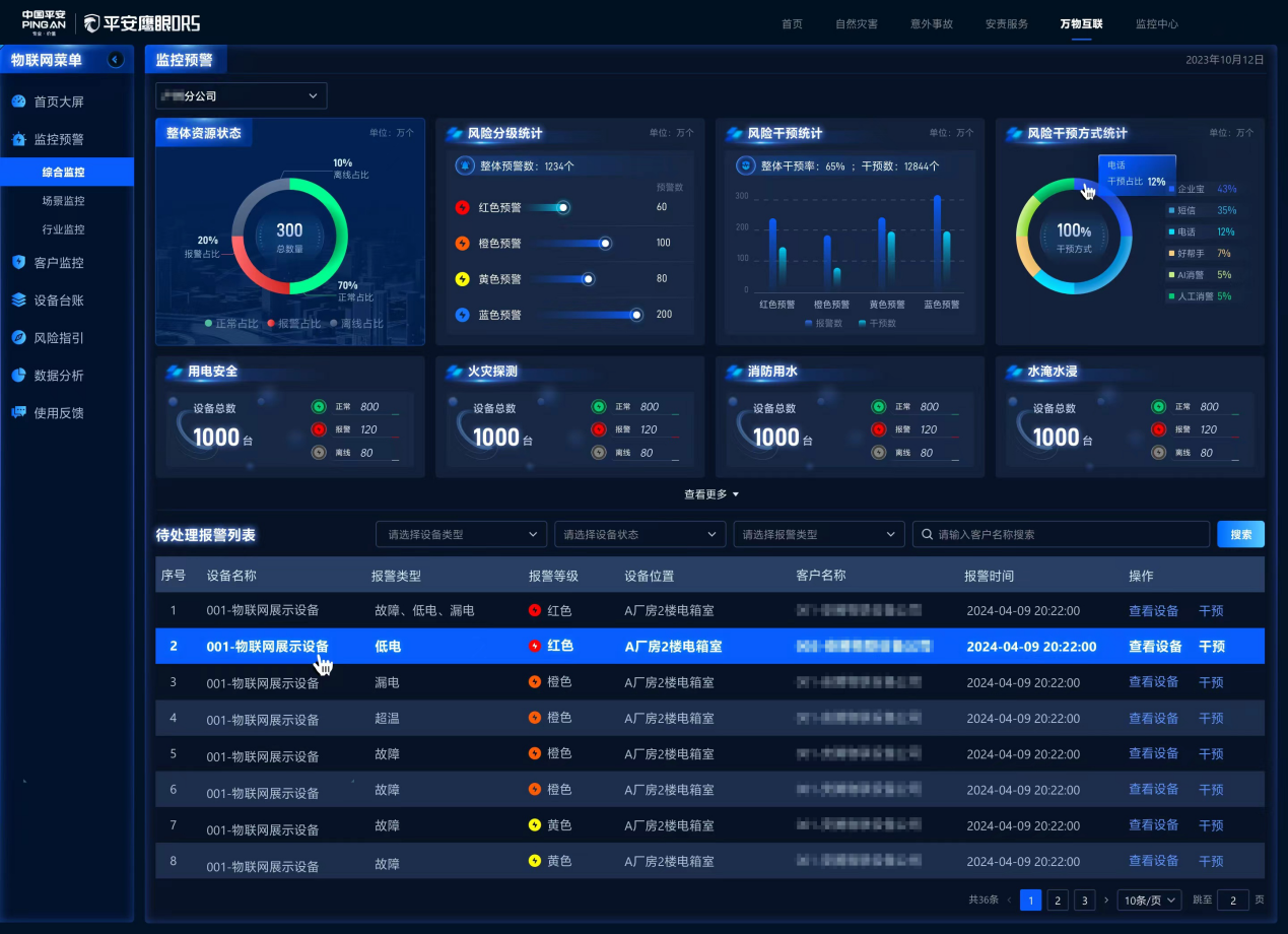 在安全生产管理方面,实现AI驱动的风险巡查、隐患预测和自动处置。鹰眼的万物互联平台深度融合AIoT设备实时监测、大模型深度学习技术,通过部署在电气系统、消防设施、电梯设备、工业生产线等重点场景的60余种物联设备,实现对设备运行状态、环境参数、操作行为等100余种设备型号数据的多维感知,同时依托人工智能大模型,对海量历史数据(如地理信息、气象灾害、保单成本数据等)的特征提取与模式演进推演,实现由AI驱动的风险巡查策略优化、隐患概率预测和处置工单自动生成等。
