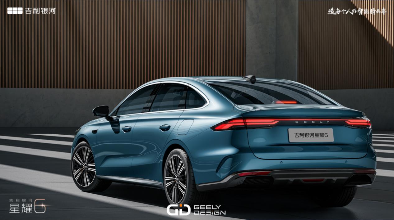 8月27日,吉利银河新能源发布旗下全新中型轿车——银河星耀6的图片。该车将搭载全新一代雷神AI电混2.0技术,配备容量为17kWh的电池包,纯电续航里程可达125公里。