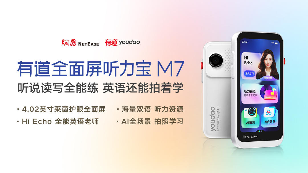799元的教育硬件能否成为学生党的高效学习伴侣?近日,网易有道推出的全面屏听力宝M7(以下简称M7)引发行业关注。这款设备配备4英寸全面屏,可以通过AI作文批改、一周一充的续航。