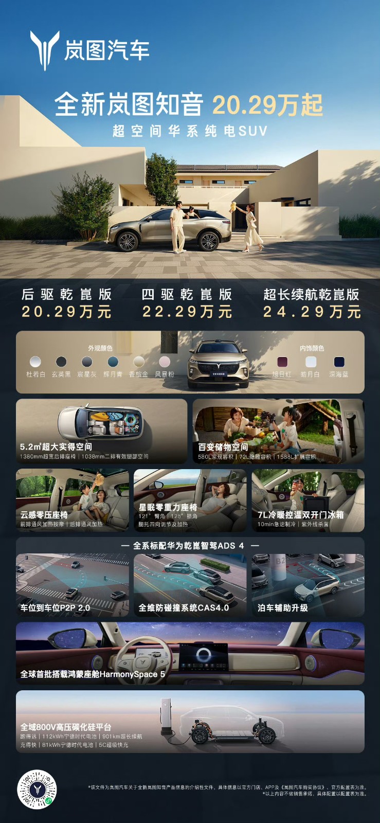 全新岚图知音,是岚图汽车秉承“更懂家庭”的产品思维,与用户深度共创、与华为深度联调的跨代革新力作。剑指行业“毛坯交付”、“反向增配”乱象,全新岚图知音以满配宽奢座舱、满血华为智能、满级精装舒适,配齐用户对“家”的所有想象,将重塑20万纯电SUV价值标杆。