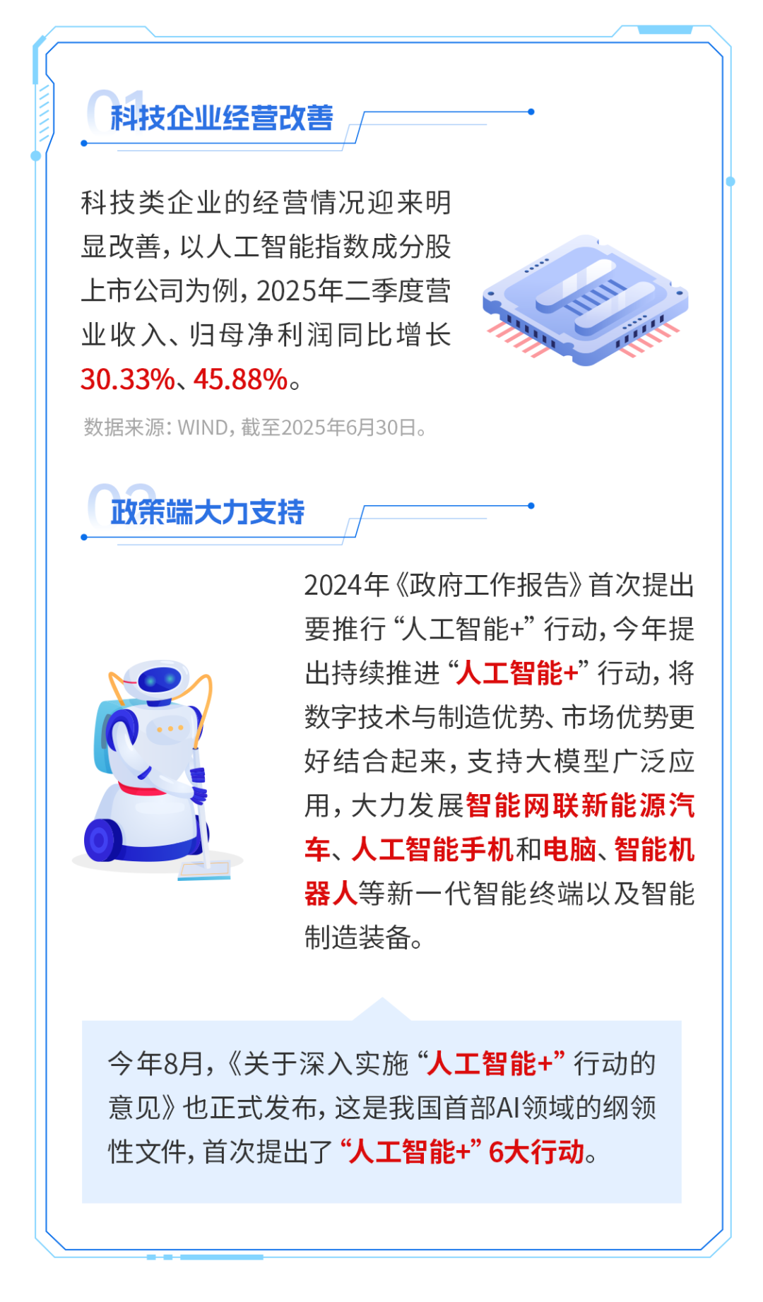 (数据来源:Wind,人工智能指数2020—2024年各年度涨幅为11.55%、18.48%、-25.39%、35.06%、18.48%。指数数据仅供参考,不作为任何投资建议或收益暗示。指数过往涨幅不预示其未来表现,也不代表跟踪该指数的指数基金未来业绩。指数波动较大,市场有风险,投资需谨慎。)