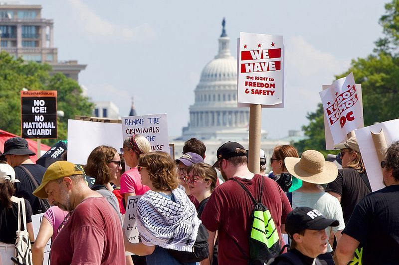 芝加哥市民当天举行抗议活动,要求“制止法西斯政权”“拒绝部队入驻”。与此同时,美国首都华盛顿同样举行要求“结束占领”的抗议活动。