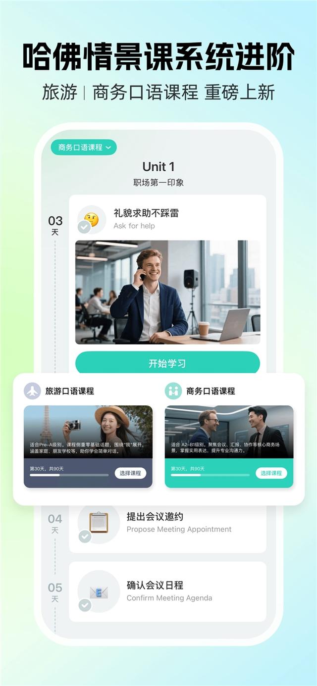 1、注册即定制方案:登录后明确学习目标(日常交流 / 考试备考 / 职场提升),完成水平测试,系统智能匹配课程难度,避免无效学习。