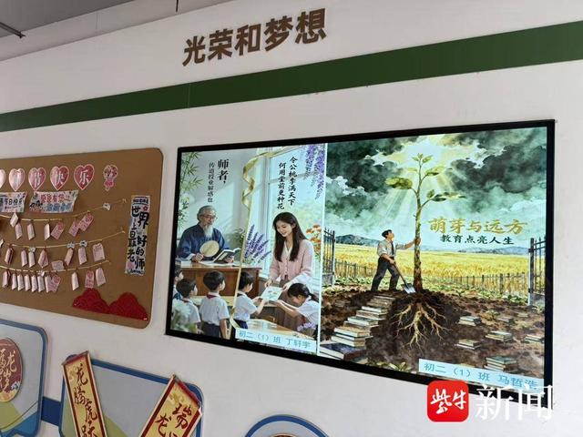 随后,学生们不仅手捧亲手制作的贺卡与老师微笑合影,更带来了特别惊喜 —— 他们运用 AI 技术,将校园生活场景、暖心祝福语融入设计,制作出一幅幅独特的祝福海报,让创意与心意交织。此外,校长亲手为每位教师送上亲笔书写的书签,墨香传递关怀。此次活动兼具传统温情与创新活力,既弘扬尊师重教传统,也让教师们在满满爱意中感受职业荣光。