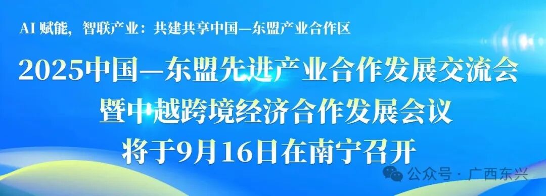 为进一步落实中国—东盟领导人共识,深化区域先进产业协同发展,定于9月16日在南宁市举办2025中国—东盟先进产业合作发展交流会暨中越跨境经济合作发展会议。