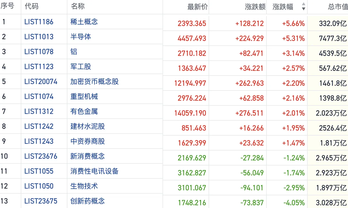 上涨的板块中,半导体、算力概念短线强势,黄金、有色板块表现活跃。军工、消费电子、基建板块跟涨。