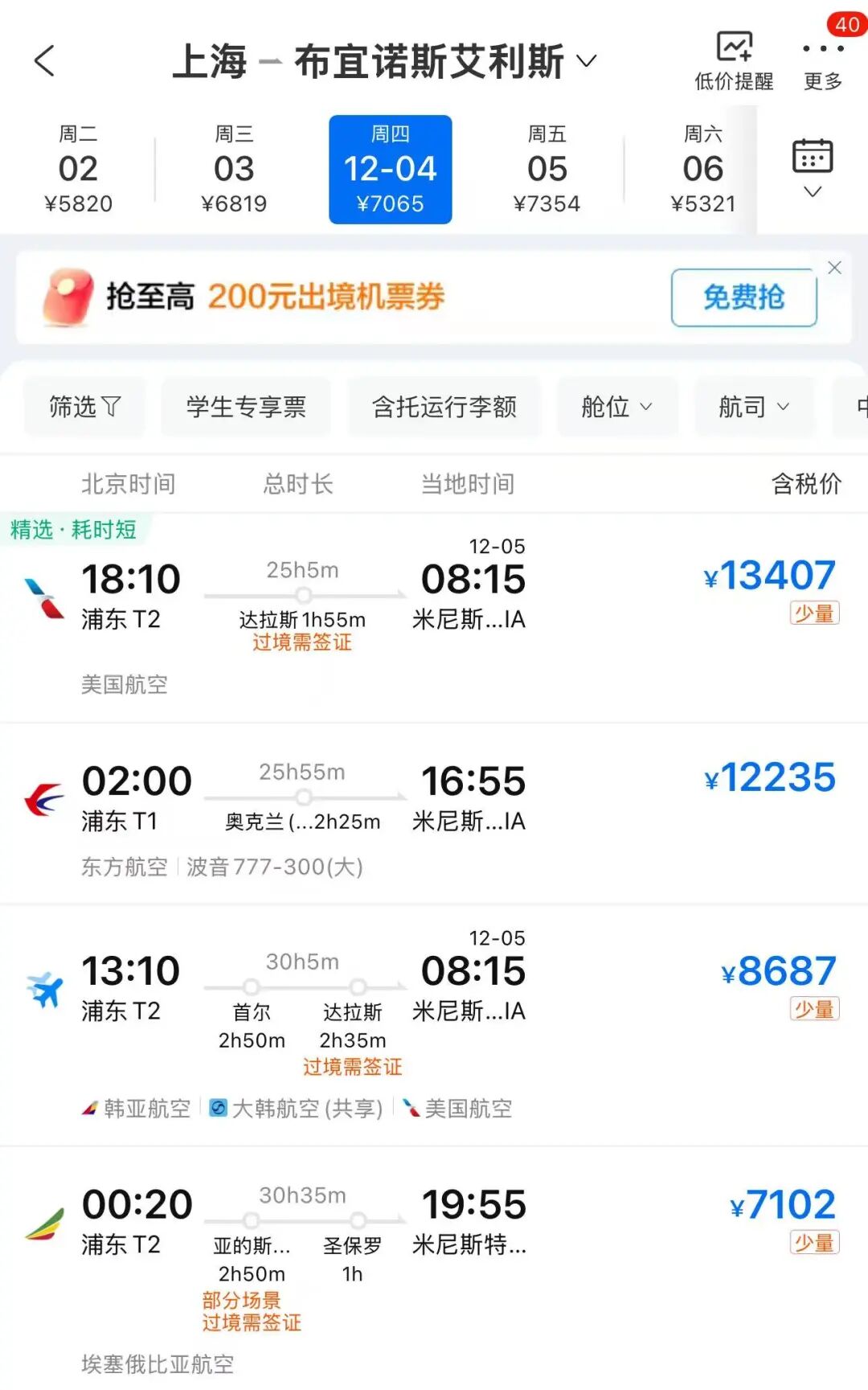 此前上海飞布宜诺斯艾利斯都需要换飞机中转,部分线路还需要额外准备签证。