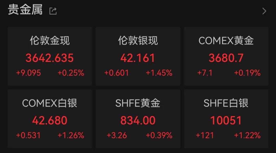 贵金属方面,Wind数据显示,截至当地时间9月12日收盘,现货黄金价格上涨0.25%;COMEX黄金期货上涨0.19%。