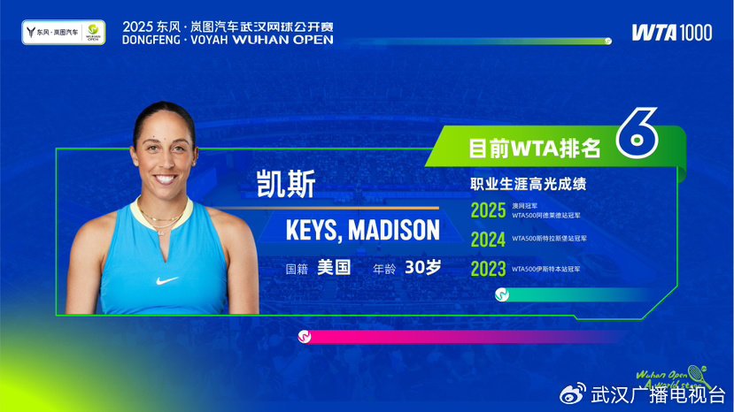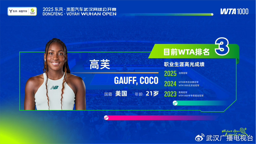 全明星阵容集结江城,网坛巅峰盛宴即将开启。2025东风·岚图汽车武汉网球公开赛,将以世界级竞技舞台、创新观赛体验与炽热主场氛围,再度点燃江城金秋。期待与您相约光谷国际网球中心,共同见证荣耀时刻。