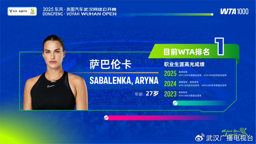 作为WTA1000级别赛事的年度收官之战,本届武网参赛阵容星光熠熠。首批参赛名单覆盖了当今世界排名前40的精英球员。本赛季四大满贯女单冠军——澳网冠军凯斯、法网冠军高芙、温网冠军斯瓦泰克、美网冠军萨巴伦卡将齐聚江城。除此之外,这份名单还包括了莱巴金娜、大坂直美、奥斯塔彭科等在内的大满贯冠军得主和先后登顶世界第一的“球后”。