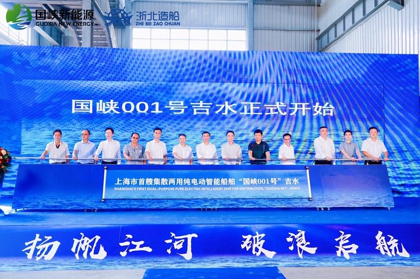 9月15日,由国峡新能源科技(上海)有限公司投资建设的集散两用纯电动智能船舶“国峡001号”,举行吉水仪式,标志着上海内河航运纯电动船舶示范应用正式迈入新阶段,将为落实“交通强国建设纲要”,推进内河航运绿色低碳转型提供有力支撑。