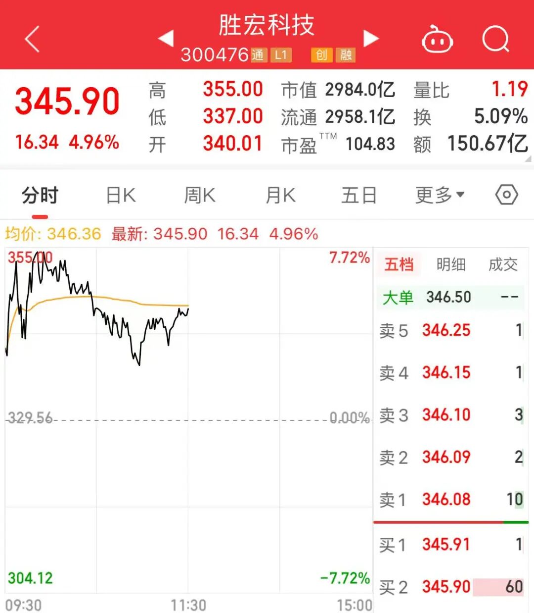 AI硬件、消费电子板块盘中冲高,胜宏科技、中科曙光、海光信息等龙头股上涨,其中,PCB龙头胜宏科技上涨4.96%,盘中股价创历史新高,最新市值为2984亿元,上午成交额为150.67亿元,居A股第一。