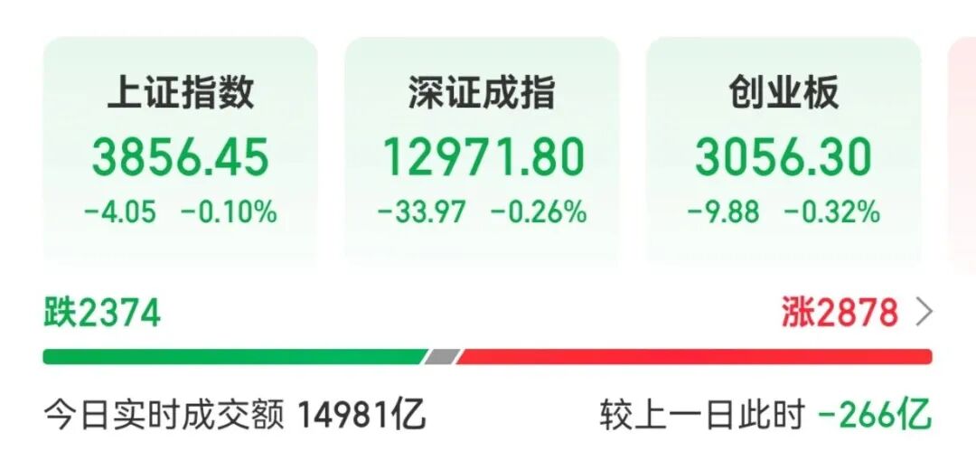 截至上午收盘,上证指数下跌0.1%,深证成指下跌0.26%,创业板指下跌0.32%。