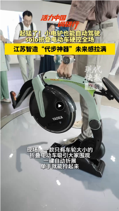 现代快报讯(记者 马壮壮/文 刘畅/摄)一个轮胎大小的折叠电动车,单手就能拎起来;会自动驾驶的电动车,还能帮你跑腿拿快递……9月16日,“活力中国调研行”江苏主题采访活动来到无锡锡山,走进雅迪科技,探访了解不断升级的上班“搭子”,以及国产电动车勇闯海外市场背后的故事。