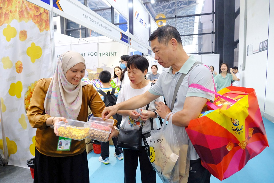 马来西亚展区的黄油饼干展位前人头攒动,许多观众成盒成袋地批量购买。“刚才尝过这款黄油饼干,特别好吃。中秋节快到了,正好多买点送给亲戚朋友。”市民蒋女士向记者展示了她的“战利品”,有马来西亚黄油饼干、奶茶和印尼咖啡以及东南亚化妆品等。