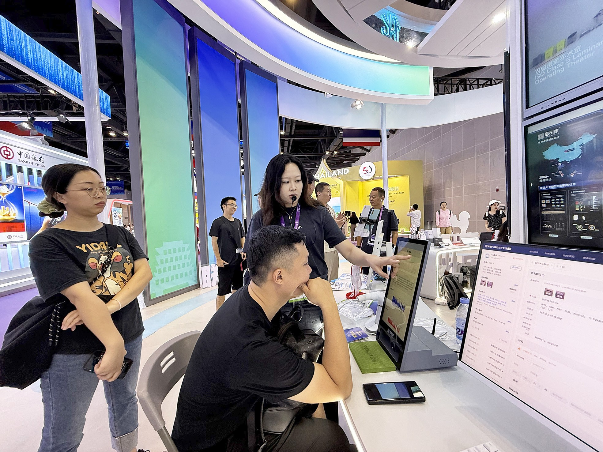 观众在南宁馆体验中医“素灵AI”系统的“AI+医疗”服务。