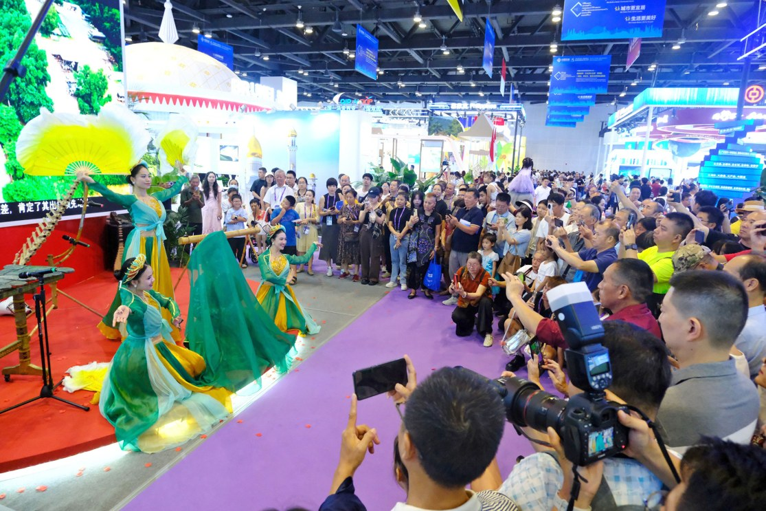 “魅力之城”展区,精彩歌舞引客来。
