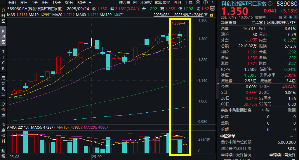 9月24日,科创板引领上冲!截至14:00,科创综指ETF汇添富(589080)上涨3.13%,科创100ETF汇添富(589980)上涨3.46%,资金持续涌入“科创小巨人”, 科创100ETF汇添富(589980)已连续9日强劲吸金,近10日累计吸金近2亿元!