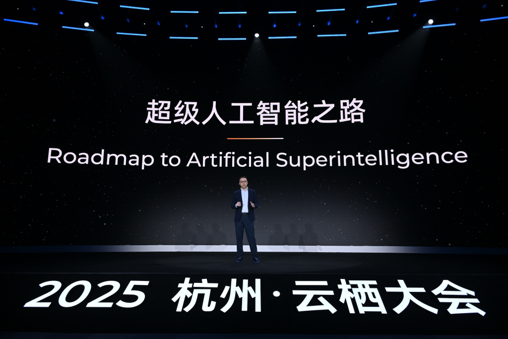 在当天的主题演讲中,吴泳铭描绘了一幅宏大的AI愿景。