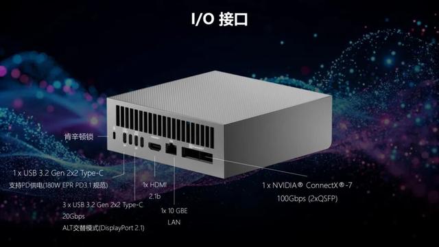 这款仅有迷你主机大小的“黑科技”产品,搭载了由NVIDIA提供的旗舰级GB200 Grace Blackwell超级芯片,性能直接对标千万亿次超算,参数规模支持2000亿级大模型,从此AI开发不再受限于机房,办公桌就是最前沿的实验室。