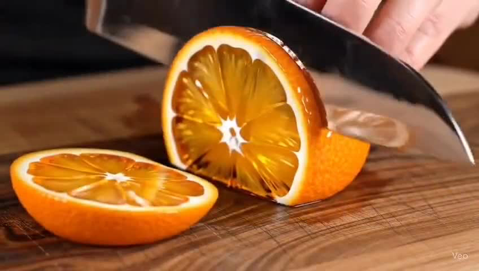 到了现在,我们再让AI去生成吃面条的视频时,画面和动作的呈现已经比之前更加自然。还有Veo 3引爆的切水果视频,AI已经能够生成一个用刀切开橙子,然后汁水四溅的视频效果了。