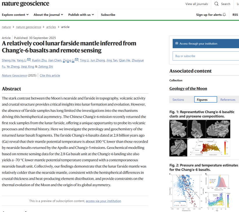 10月6日,在中华民族传统佳节中秋节之际,国家航天局和国家原子能机构联合发布嫦娥六号月球背面样品研究最新成果。中国科学家首次基于嫦娥六号月球背面样品研究发现,月球背面月幔相比月球正面更“冷”,这一发现进一步深化了人类对月球“二分性”现象的认识,为月球正面与月球背面的月幔温度差异提供了岩石学与地球化学等科学依据,为月球演化和“二分性”特征研究提供了关键科学数据。