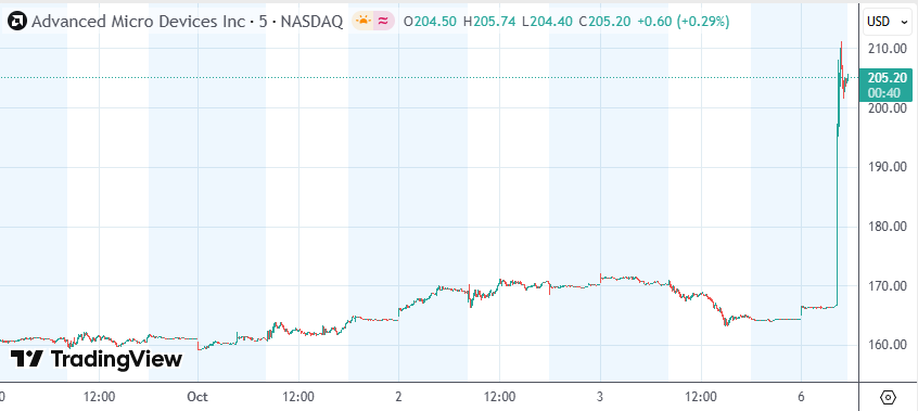 AMD首席执行官苏姿丰在声明中表示:“此次合作将两家公司的优势融合在一起,实现真正的双赢,助力全球最具雄心的AI基建,并推动整个AI生态系统的发展。”