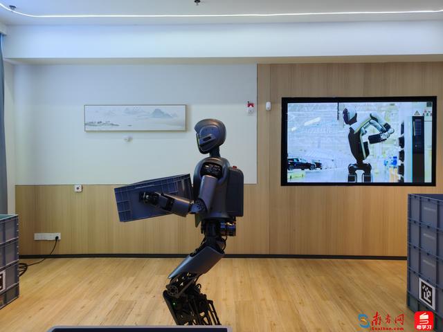 走进优必选,记者更是亲眼见证了机器人的高效作业场景,人形机器人可以将沉重的物料箱沿着预设路线平稳搬运,还能维持7×24小时不间断的作业状态,完成分拣、搬运、精密装配等多种任务实训,成为可靠的“工作搭子”。