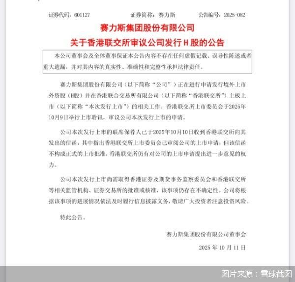 自主车企们正赴港寻路资本市场。赛力斯近日发布公告,披露公司正在进行申请发行境外上市外资股(H股)并在香港联交所主板上市的相关工作。公告显示,10月9日香港联交所上市委员会举行上市聆讯,审议赛力斯本次发行上市的申请。10月10日本次发行上市的联席保荐人收到香港联交所向其发出的信函,确认香港联交所上市委员会已审阅赛力斯的上市申请,但该信函不构成正式的上市批准,香港联交所仍有提出进一步意见的权力。
