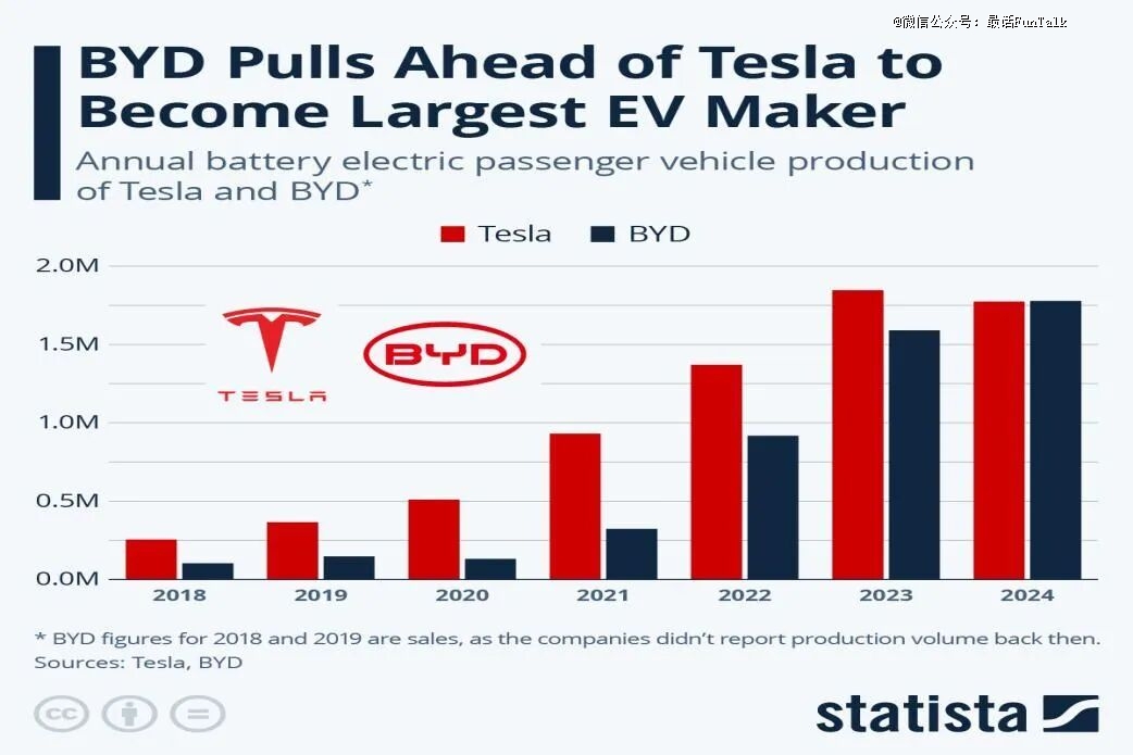 与此形成鲜明对比的,是中国新能源车企的强势表现。比亚迪连续第四季度在全球纯电动车销量上力压特斯拉,第三季度纯电车型销量达582,522辆,*特斯拉85,423辆。而在全球市场份额方面,比亚迪已连续三个季度成为全球电动汽车销量冠军,2025年第二季度市场份额达到22%,销量超过85万辆,同比增长15%149。