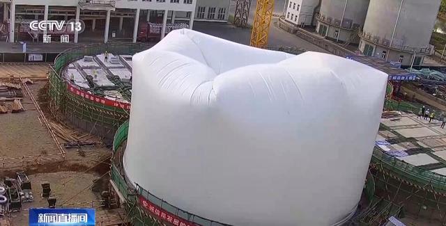 中储粮成都储藏院建筑师 包晓强:气膜仓整个仓顶结构的学术名词叫三心球形拱顶结构。这个结构的灵感来源是鸡蛋壳。常规粮仓的穹顶结构是一个半球形,无效空间就会很大,经济性不是很好。气膜仓的仓身段是一种非常圆滑的过渡,雨水就没有汇集的位置,可以保障我们粮仓的排水效果。