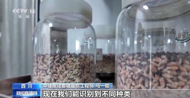 中储粮成都储藏院工程师 马一铭:过去我们将这些黑黑的小虫子称为害虫,现在我们能识别到不同的种类。