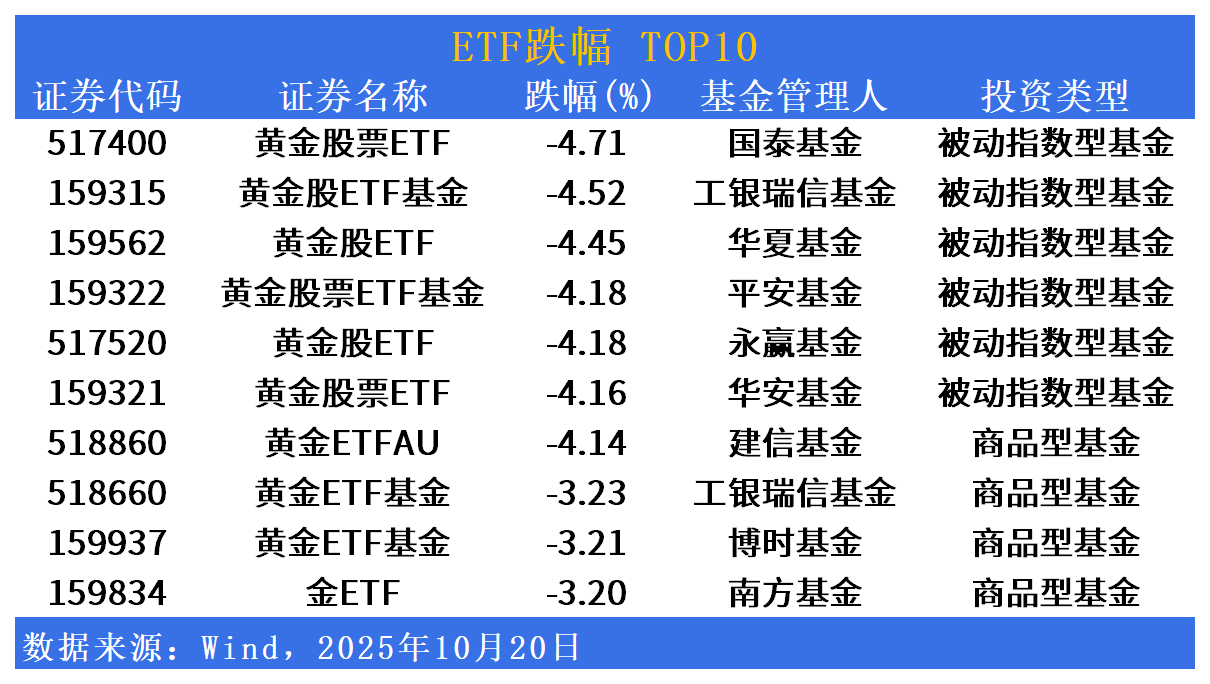 跌幅方面,黄金板块回调居前
