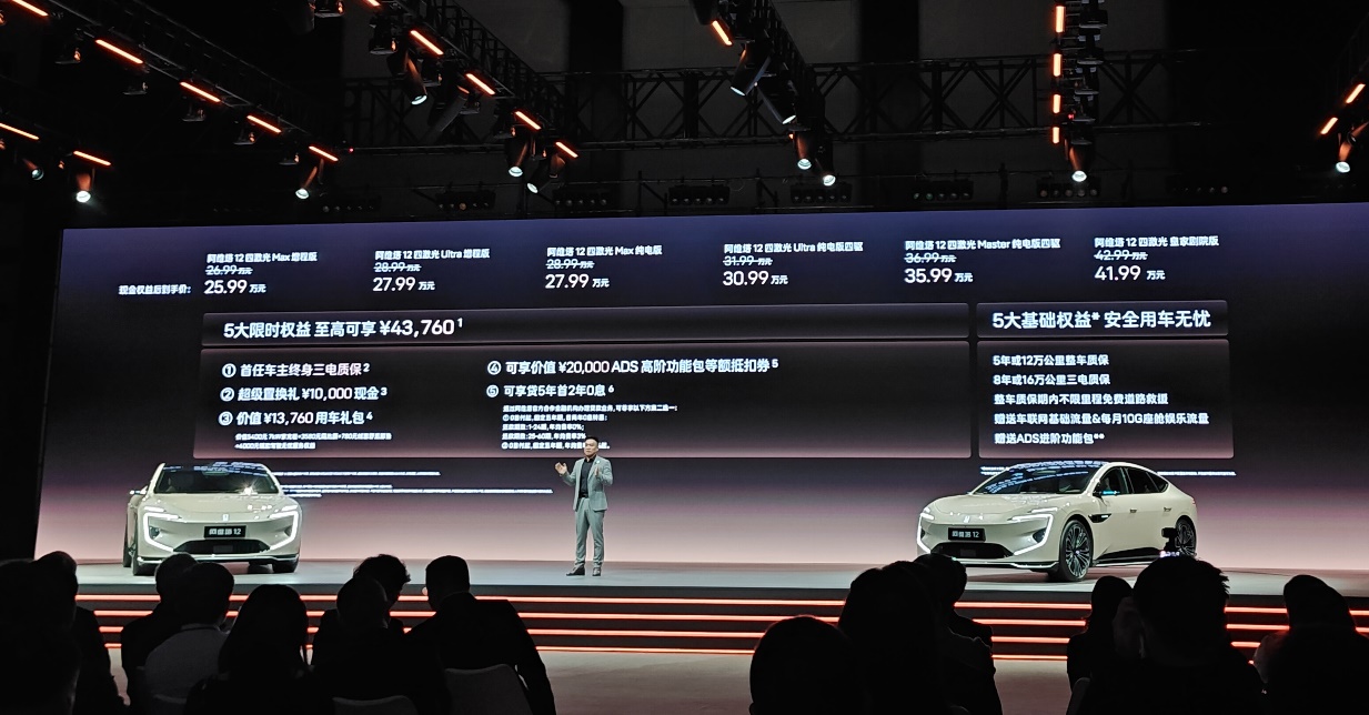 10月28日,阿维塔12四激光版在重庆上市,推出纯电和增程双动力共6个车型版本,权益后到手价为25.99万元-41.99万元。新车全系标配华为四激光雷达,增程版全系标配52kWh宁德时代骁遥超级增·混电池,再度升华30万级豪华轿车标准。