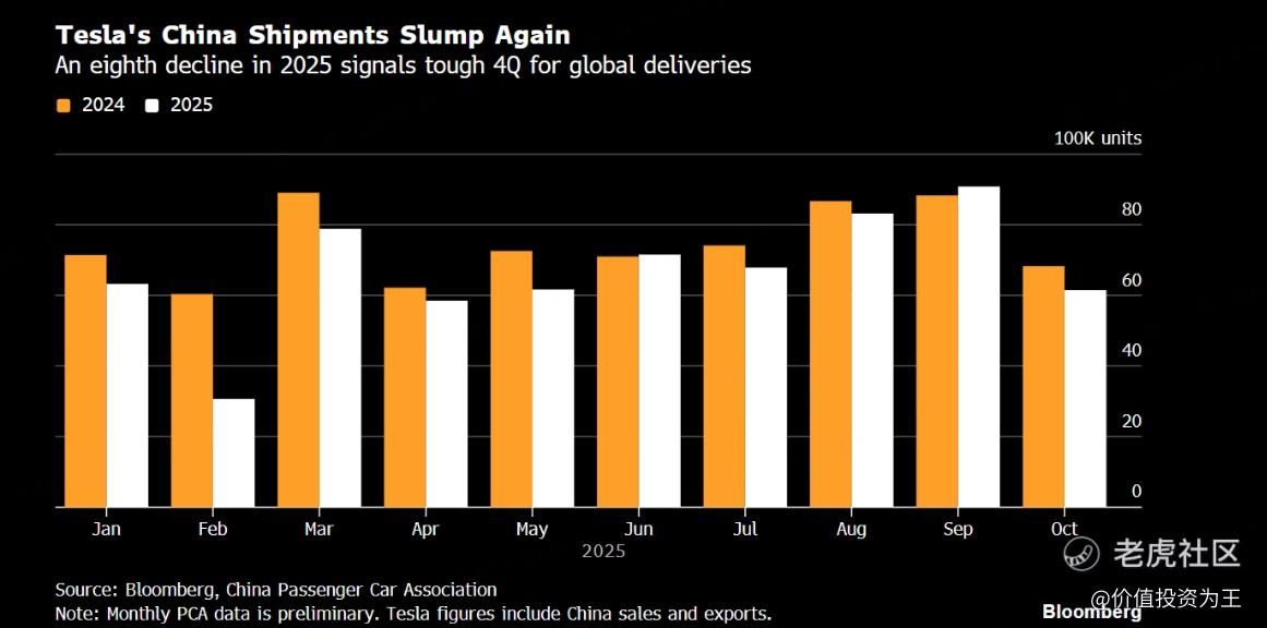 特斯拉中国10月销量同比下滑近10%: $特斯拉(TSLA)$