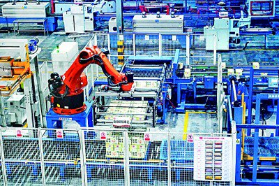 福建盼盼食品集团5G智慧工厂的饮料产品自动包装生产线。新华社发