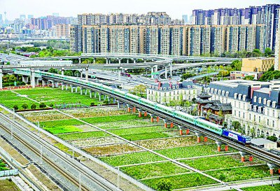 “银发专列”行驶在四川成都市境内的石羊立交桥上。新华社发
