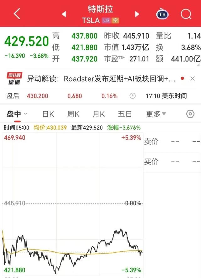 特斯拉跌超3%,市值一夜蒸发545亿美元(约合人民币3882亿元)。