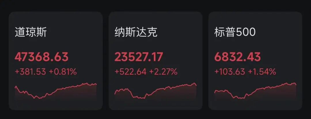 随着美国参议院就拨款问题实现突破性进展,美东时间周一,美股三大指数集体收涨,截至收盘,道琼斯指数涨0.81%,标普500指数涨1.54%,纳斯达克综合指数涨2.27%。市场风险偏好回升,英伟达、Palantir等重量级人工智能概念股领涨。