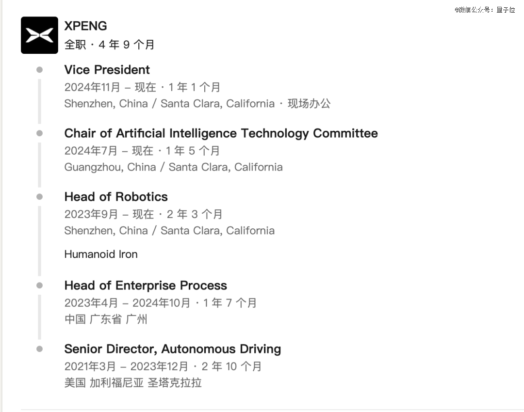 此后,他进一步出任小鹏汽车AI技术委员会主席,并晋升为公司副总裁,正式成为小鹏智能战略的核心人物之一。
