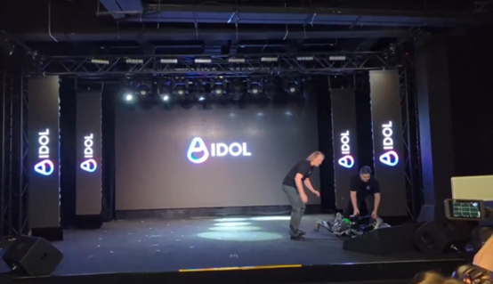 当时两名工作人员伴着电影《洛奇》的配乐引导Aidol走上舞台,在向现场观众挥手示意后,Aidol突然失去平衡倒地,部分零件散落在舞台上。现场工作人员见状立即上前遮挡,避免机器人暴露在公众视野中,同时将它抬下舞台。