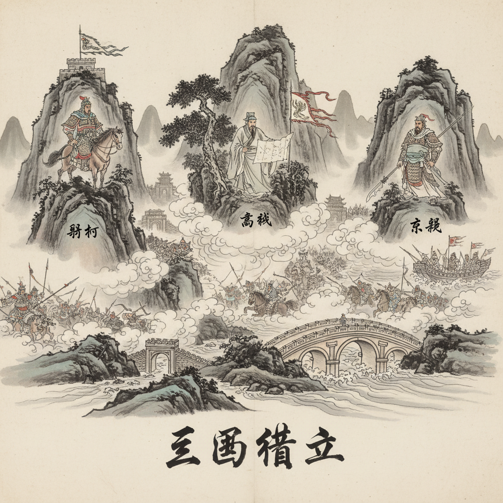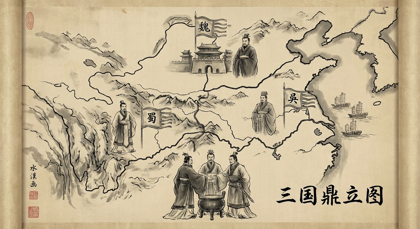 根据“用一张图解释三国鼎立的历史故事,水墨画风”的提示词,模型输出分别为: