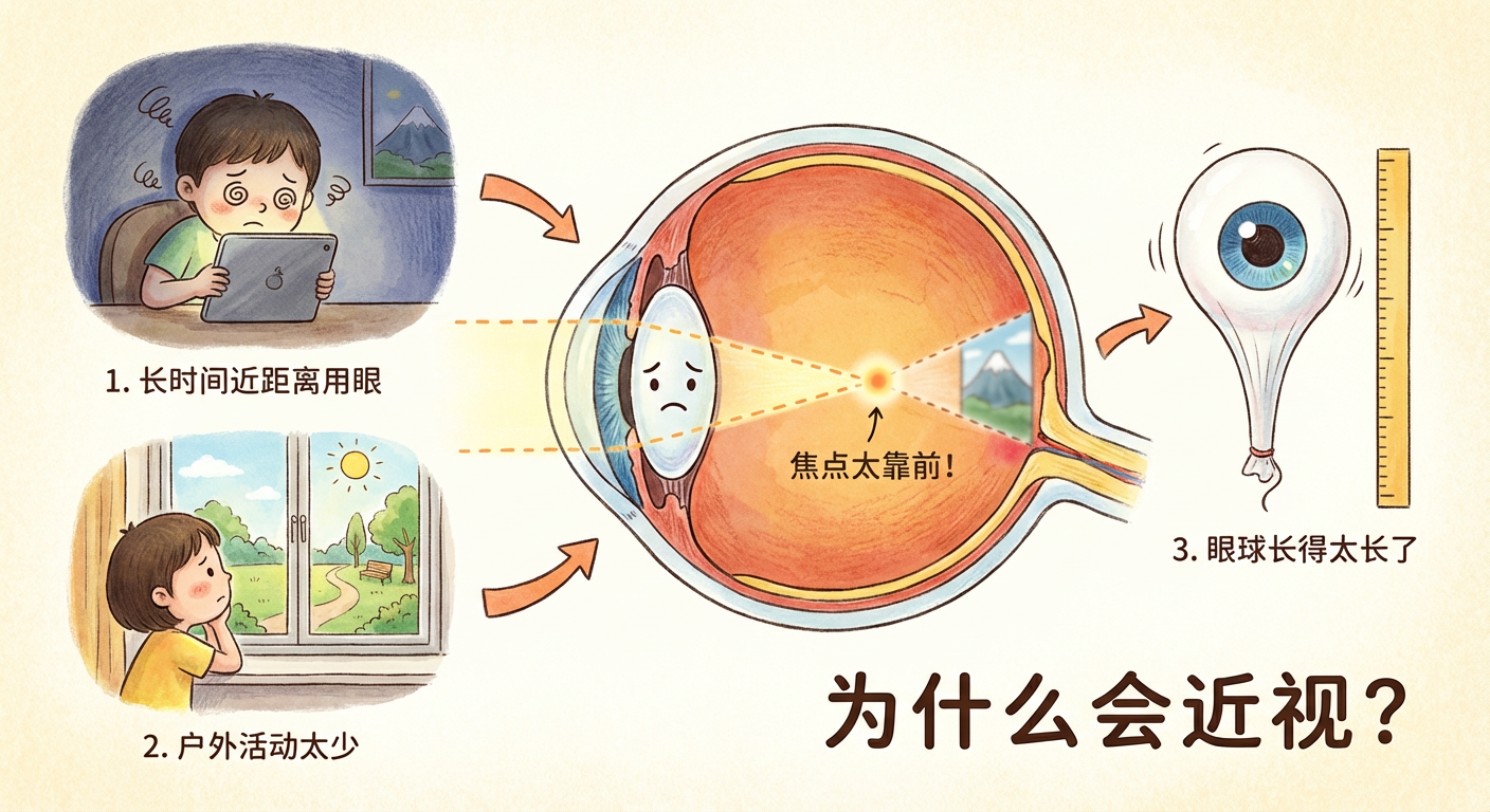 可以看到,模型不仅遵循了画风等基础指令,还自主生成了近视成因的相关内容。
