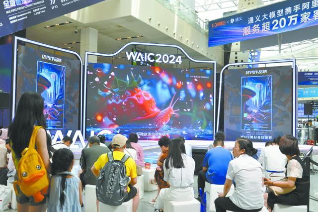图片说明2:观众在参观通义千问AI大模型。(视觉中国)