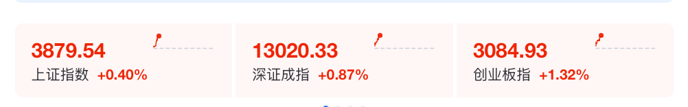 截至发稿,三大指数全线飘红,创业板指涨超1%,科创50指数涨超2%。
