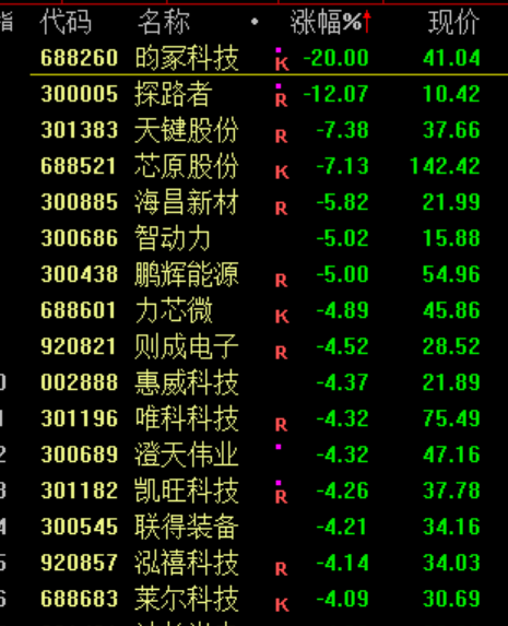 下跌方面,消费电子板块走低,昀冢科技跌停。