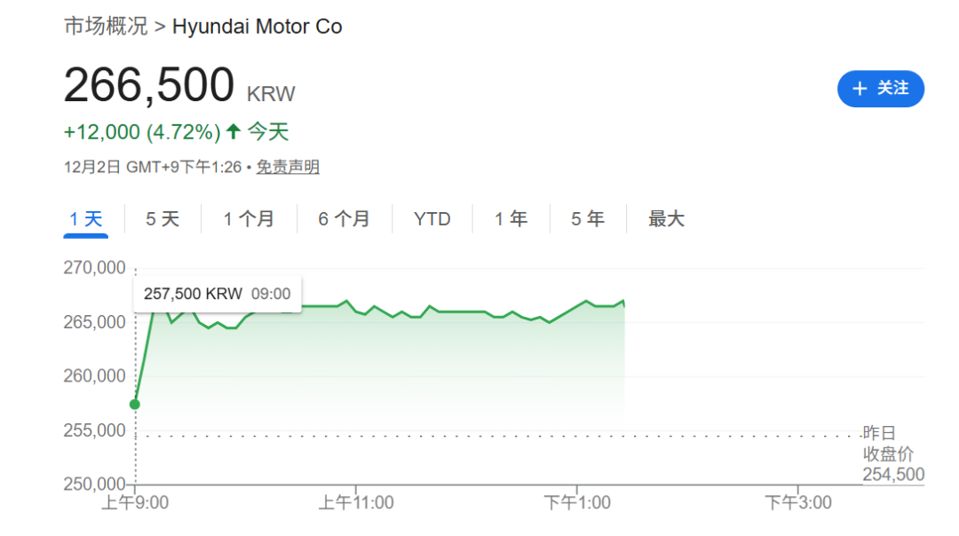 12月2日,在美国商务部长卢特尼克确认对韩国汽车实施15%的较低关税并自11月1日起追溯生效后,韩国汽车股走高。