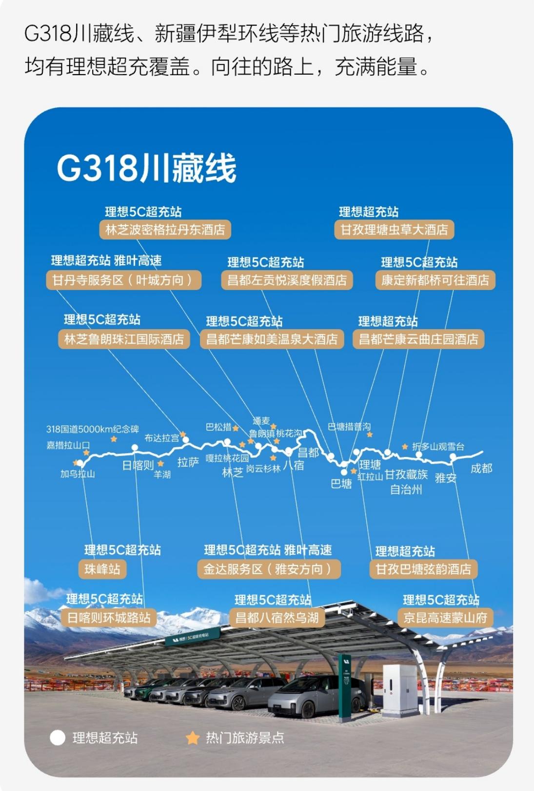 理想汽车至今已建成3614座超充站,覆盖全国31个省份和260+城市,平均每天新增4座超充站,每周新增约28根超充桩。其中高速超充站1000+座,实现国家级高速覆盖率70%,贯通中国最繁忙的18条高速,同时覆盖G318川藏线、新疆等热门旅游路线和景点。城市超充站在一二线城市已经构建起10分钟充电生活圈,核心区域实现平均3公里半径覆盖。