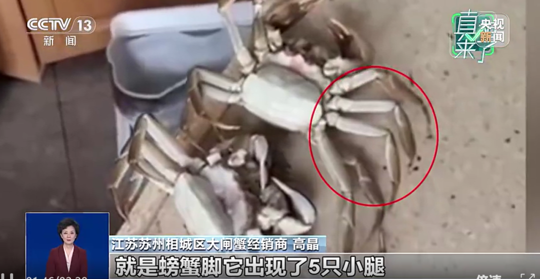 江苏苏州相城区大闸蟹经销商高晶:第一眼看上去就感觉像AI制作的,运镜很奇怪。如果再细看,螃蟹脚出现了5只小腿,和正常的大闸蟹不一样。视频比例也裁切了,很明显就是为了去掉水印裁切的。所以我们让他再拍一段视频,用手指逐个去指一下,拨动一下,这个我觉得不可能再造假了。后来他真的发来了这样一段视频。