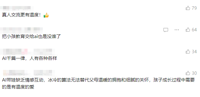 此事引发网友热议,不少网友表示,AI不能替代父母陪伴。